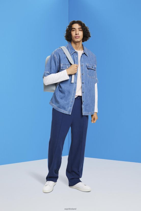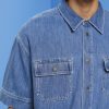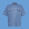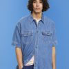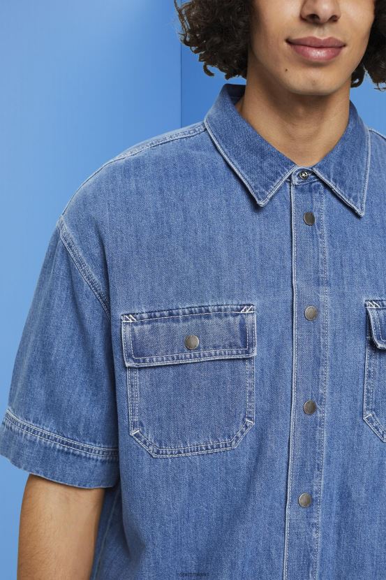 Esprit Men Boxy denim short-sleeved shirt Blue Medium Wash Shirts D2B4J4670