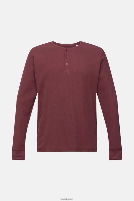 Esprit Men Long sleeve waffle pique top, 100% cotton Bordeaux Red Long Sleeve D2B4J4823