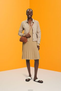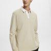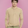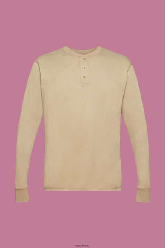 Esprit Men Long-sleeved top with buttons Khaki Beige Long Sleeve D2B4J4723