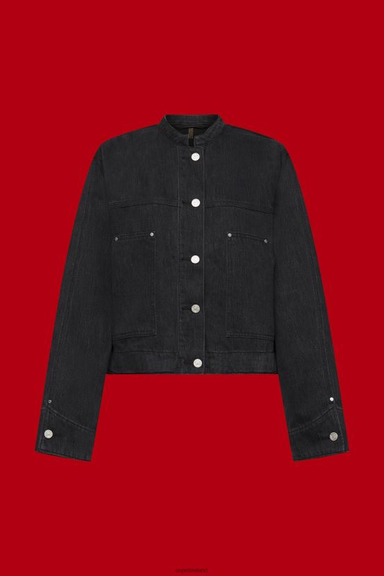 Esprit Women Collarless denim jacket with drawstrings Black Medium Wash Jackets D2B4J4297