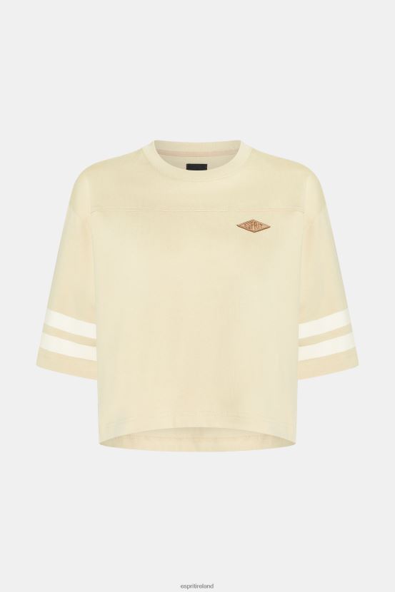 Esprit Women Cropped varsity logo rugby tee Light Beige T-Shirts D2B4J4412
