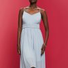 Designed From Airy Mesh With A Full Lining, This Knee-length Dress Features A Flattering Elastic Band At The High Waist. Complete With Slender Shoulder Straps.