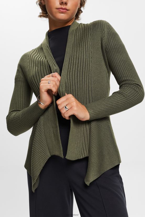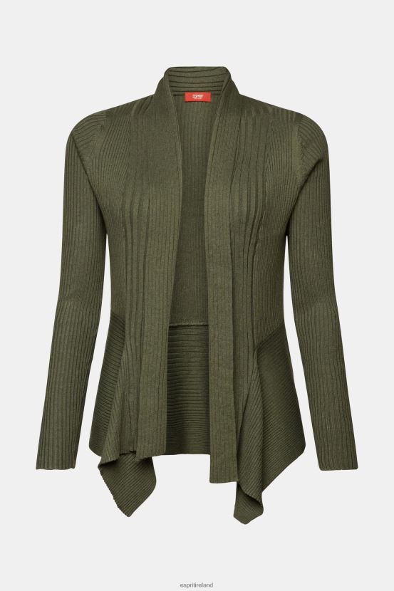 Esprit Women Recycled: ribbed cardigan with handkerchief hem Khaki Green Sweaters D2B4J424
