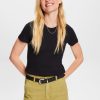 Esprit Women Ribbed jersey t-shirt Black T-Shirts D2B4J41