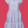 A Seasonal Staple, This Knee-length Dress Is Airy, Comfortable And Feminine. Designed From Breathable Cotton Fabric, It Features A Buttoned Front And A Timeless Striped Pattern.