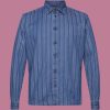 Esprit Men Slim fit denim shirt with stripes Navy Shirts D2B4J4717