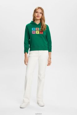 Esprit Women Embroidered logo hoodie, organic cotton Dark Green Sweatshirts & Hoodies D2B4J410
