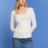 Esprit Women Ribbed long sleeve top Off White Long Sleeve D2B4J489
