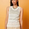 Esprit Women Ribbed, sleeveless jumper, linen blend Off White Sweaters D2B4J4108